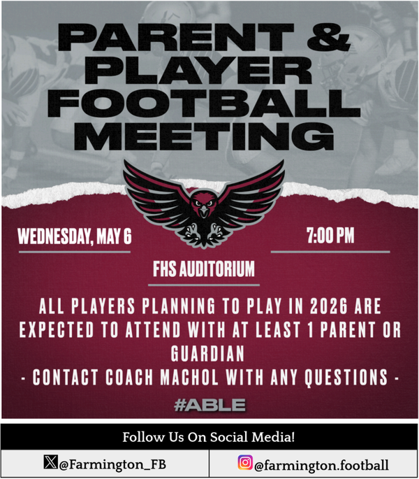 On Wednesday, May 7, we will hold our annual Spring Informational Meeting. All players planning to play in 2026 should attend with at least one parent/guardian. See details below.